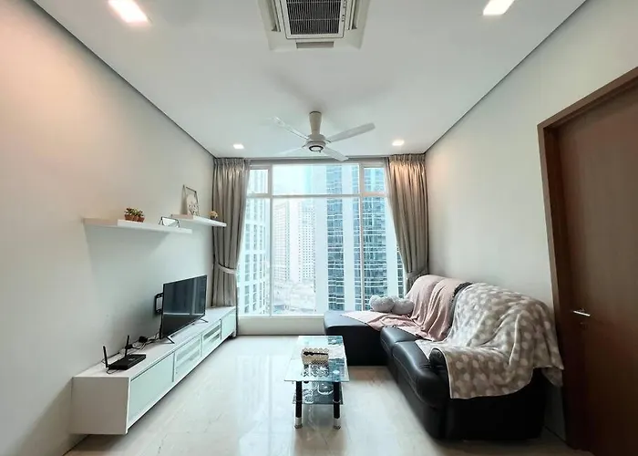 The property has a living room and a fully equipped kitchen, and comforts such as air conditioning. 450M From Aquaria Klcc/Kl Conventionctre, 2 Beds#2 Apartment is equipped with a bathroom that features a hair dryer and bath sheets.